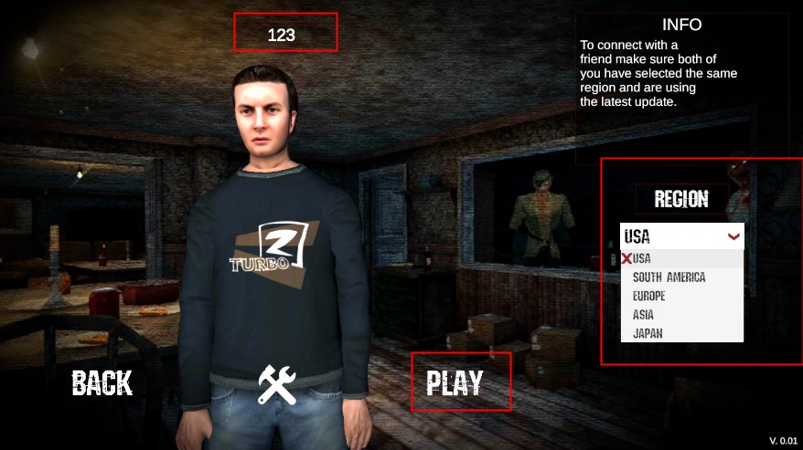 3、在上方填入你想用的名字,右侧 region 选好区服,按 play 开始;