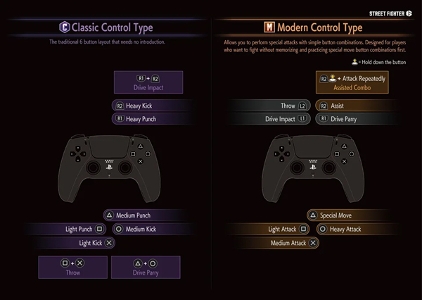 四、《街头霸王 6》有两种操作模式:经典和现代。经典模式跟老式的玩法接近,能做出更细腻的操作,代价是要学那些复杂的指令;现代模式把某些技能简化成一个键,用起来更容易,但灵活度会被削弱。作为有点格斗基础的玩家,我偏爱传统那套:搓招要有手感和时机,但能把动作的细节控制到位。不过现代模式也挺吸引人的,照这样下去,肯定能让不太玩格斗的朋友也愿意试一试。