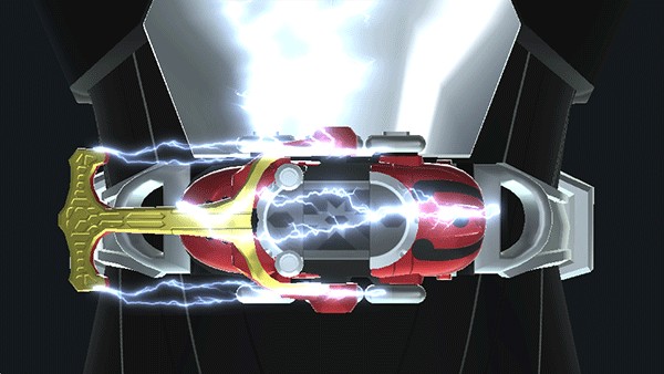 3、接着会看到一个变身腰带出现,点那条腰带把它装上,就像真的把配件戴好一样。