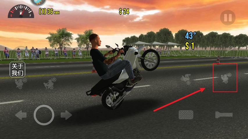 5、点图里那个按钮可以把车头翘起来,做出一堆花哨动作,动作越帅拿分也越高,玩得溜会更有成就感。