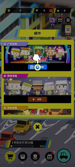 4、在“超市”里含有很多资源宝箱,还可以招募员工。逛一圈,会发现挺多意外收获,可以开宝箱看看运气。