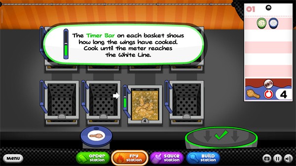 9、每个篮子上的计时器条会显示鸡翅的烹饪进度,这里要把鸡翅煮到白线的位置;