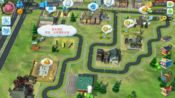 建造是玩法的核心,城市的发展靠高楼大厦,还需要资源和各种公共设施配合。游戏把建筑分成住宅、资源和发展三类,玩家可以根据需要自由规划城市布局,玩出自己的风格。