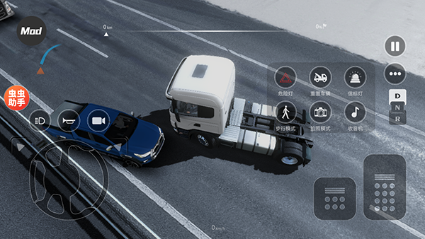 2、左侧是虚拟方向盘,负责转向,右侧按键可以控制加速和刹车,操作布局挺直观的。