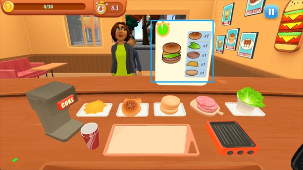 用第一人称视角操作,做菜的手感还挺真实,几百样食材任你搭配,能做出各种创意菜来满足顾客要求。在限定时间内把餐做好能拿奖励,然后慢慢升级厨具,做事会更快,也能解锁更多好玩内容。