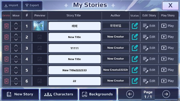 4、角色和视觉小说都能导出,方便分享给朋友看,别人做的也能导入进来,一起把故事拼得更大更好看。