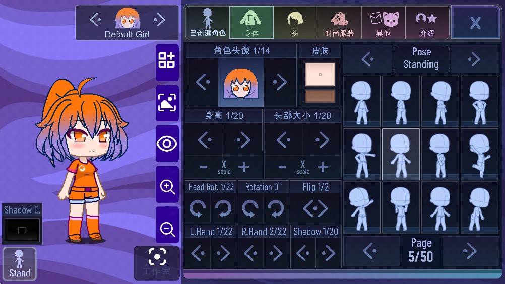 1、觉得人物姿势单调?创建的时候就能换不同的站姿,看起来就不一样。