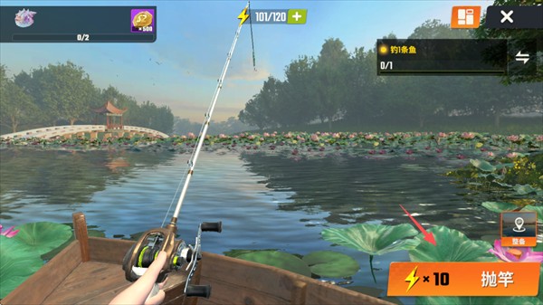 3、进入游戏后,点击右下角的“抛竿”,甩出你那决定性的一竿!别紧张,掌握好力度和角度就行,感觉像在真钓鱼。