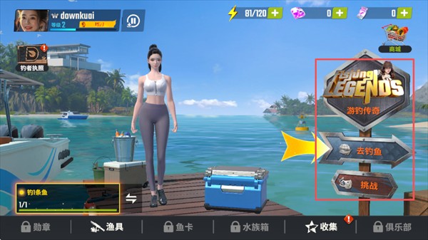 1、游戏提供三种模式【中游钓传奇和挑战需要钓鱼执照达到B级】