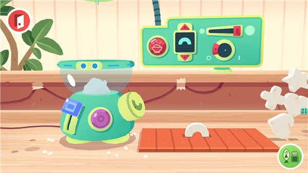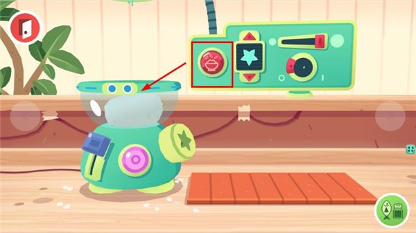 2、点击旁边的米饭标志,将米饭放置机器中。操作很直观,拖一拖就行,好像在帮厨房里的小机器人上班。