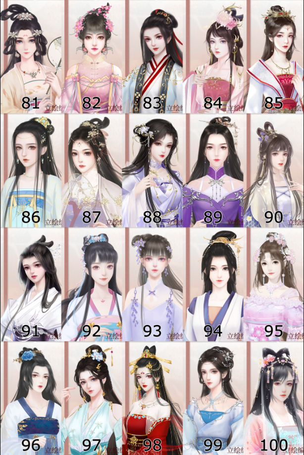 深宫曲妃子【立绘编号】1-100,如下图所示: JxY迷星网 - 手机游戏 - 手机软件 - 免费下载资源库