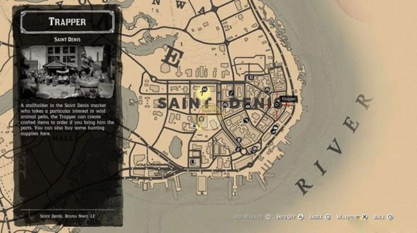 作为新手猎人,前期一条高效路线比较好走:先骑马去 Strawberry 附近打传奇公鹿,顺便解锁那边的捕猎人;接着坐马车回瓦伦丁,再搭火车去 Annesburg,猎掉北方的驼鹿后在 Annesburg 西部的捕猎人处卖掉毛皮;然后往南清掉传奇河狸,从附近的 Van Horn 出发往圣丹尼斯,在捕猎人实体店处理毛皮;最后坐车回罗德,在黑市把需要的饰品做出来。这样走动更顺,来回跑的距离能省不少。