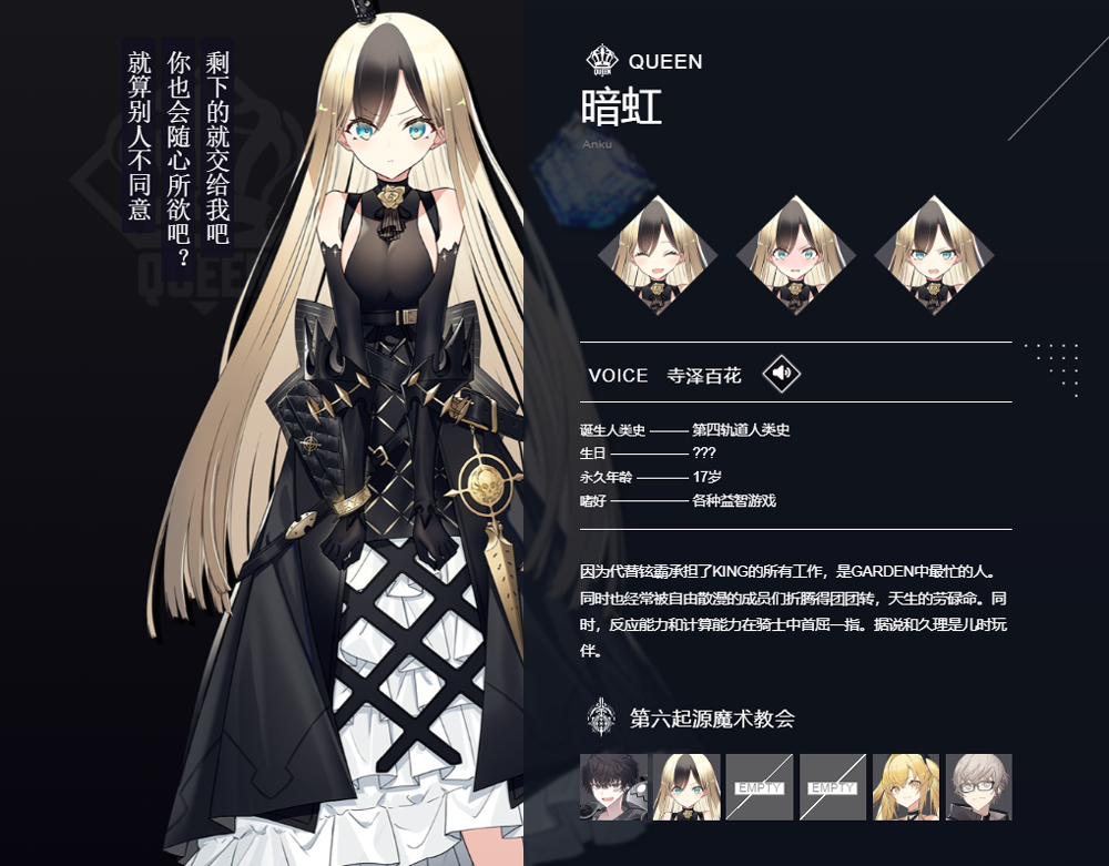 从第一轨道「剑锋凛光」里出场的荣耀战士,到第二轨道「千紫」的神秘巫女,再到第八轨道「零射橙」的元气少年,能碰到各种风格的「骑士」,慢慢跟她们培养羁绊,感觉会很温暖。