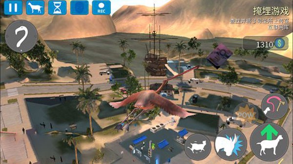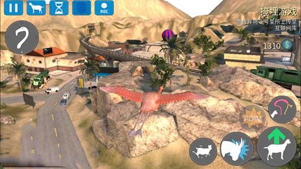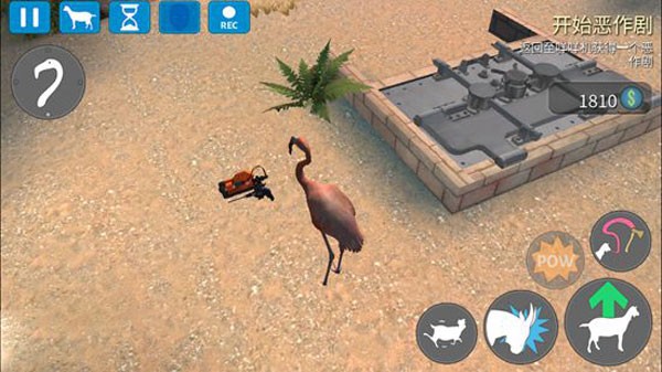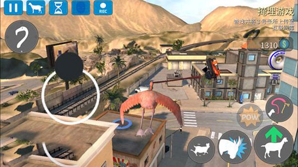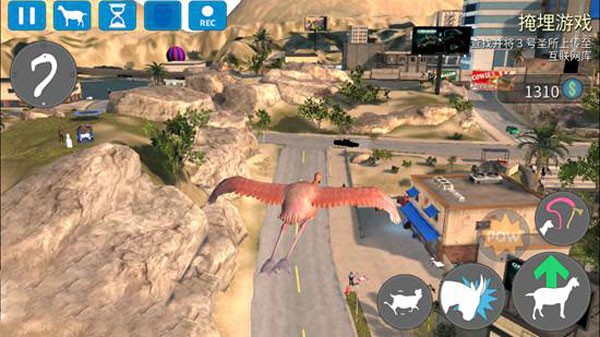 2、进了游戏后,你会操控山羊和他动物伙伴在城市里到处跑,随便看看能闹出什么花样;