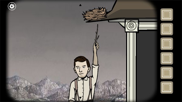 3、再点男士,把枝干给他,连续点他会把房檐上的鸟窝捅下来;