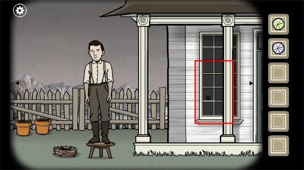 7、第三个道具藏在玻璃后面,连续点会看到一个乌鸦头的人突然出现,再点就能把道具拿走;