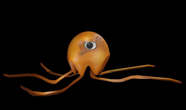 毒刺弗林是一只橙色的水母,钟形的头部中间长着一只眼睛,下连六根可伸缩的触手。四根向下垂着,另外两根像是举着招手似的在头部两侧,造型怪诞又有点让人难以忽视。