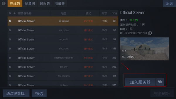 3、挑一个你喜欢的模式,然后点【加入服务器】就能进房间;