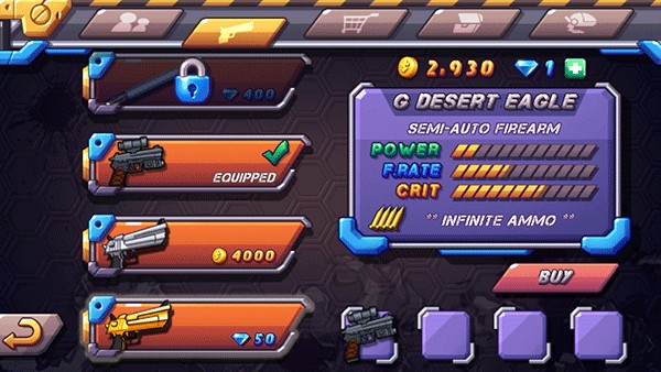 9、用钻石和金币还能解锁更猛的武器,让你打得更舒服。