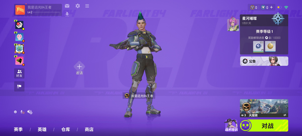 1、打开远光84手游,新玩家先注册并登录账号,进入后点击右下角对战;