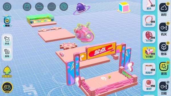 1、自由摆放,随手就能编辑关卡,零门槛上手,做好的地图还能和好友分享体验乐趣。