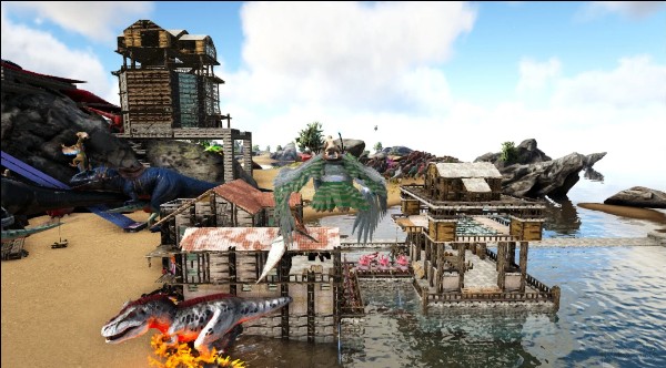 这款游戏里打部落战经常会像现实那样突然被人叫醒去拉防守。方舟里的GVG很接近真实战争流程,要有战备、侦查、潜入、攻防和掠夺等步骤,大家分工配合才能赢。丰富的水生、会飞的生物让战斗变得立体,地形和建筑也会影响战术,每场战斗的套路都可能不一样,永远不会腻。