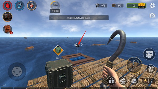 4、海面上会漂着各种资源,看到后用钩子把它们从水里拉上来,钩子是你最常用的工具之一。