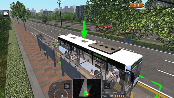 6、到站的时候要慢慢把车停进红色虚线里,那里会变成绿色,等乘客上车后再出发,动作别太粗糙,省得扣分。