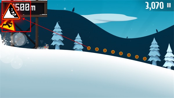 7、看到右上角那个雪崩图标开始狂晃又闪光,那就是雪崩快追上来了,赶紧往前冲,别留恋掉队的位置。