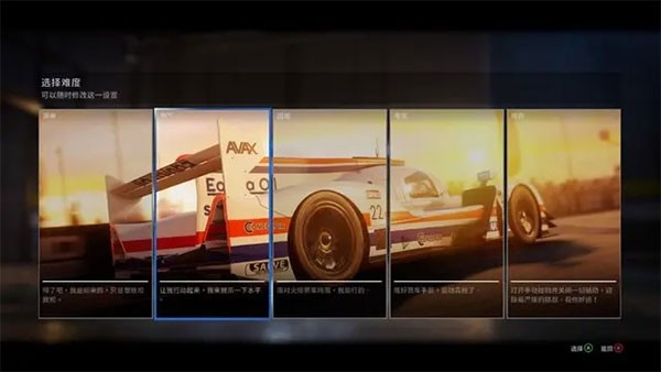 难度一共有五档,玩过老作或者平时碰过赛车游戏的人,可以直接从困难档试试手感。高档位下AI的速度有时候让人怀疑它开了外挂,建议先把操作和赛道熟悉了再往上冲。