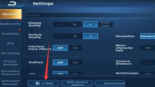 1、打开王者荣耀国际服,进到游戏界面后,点右上角的齿轮图标进入设置。