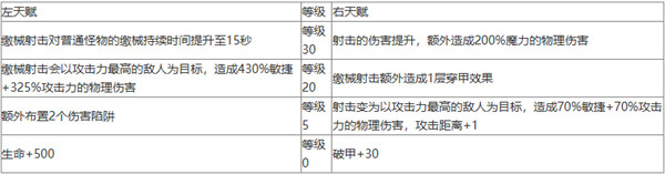 技能效果:用精准的箭矢打击敌人的持械手,造成330%敏捷+225%攻击力物理伤害,附加缴械,无法普通攻击,持续5秒。